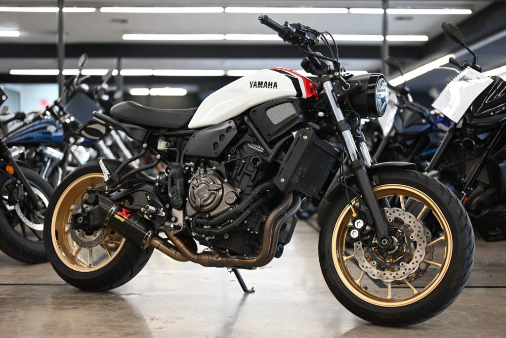 This XSR700 was brought to us by a local rider with eight thousand miles on the clock and features an Akrapovic exhaust system that typically retails for $1,029.