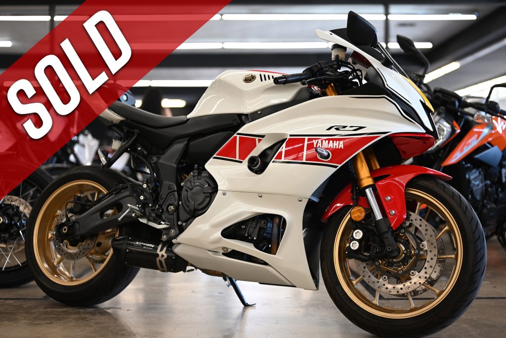The Yamaha R7 is a lightweight supersport that blends aggressive R-series styling with a torquey twin-cylinder engine and razor-sharp handling. Its focused chassis and responsive power delivery make it equally thrilling in tight corners or spirited street rides. Built with track-inspired DNA and modern sportbike attitude, it delivers a pure, connected riding experience every time you twist the throttle.